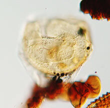 Plant and animal microfossils—pollen, algae, mollusks, forams, and ostracodes—from sediment cores serve as proxies to assess water quality changes during the past several thousand years in the bay. This dinocyst (fossil algae) specimen is about 90 micrometers across. Photograph credit: Lucy Edwards, USGS
