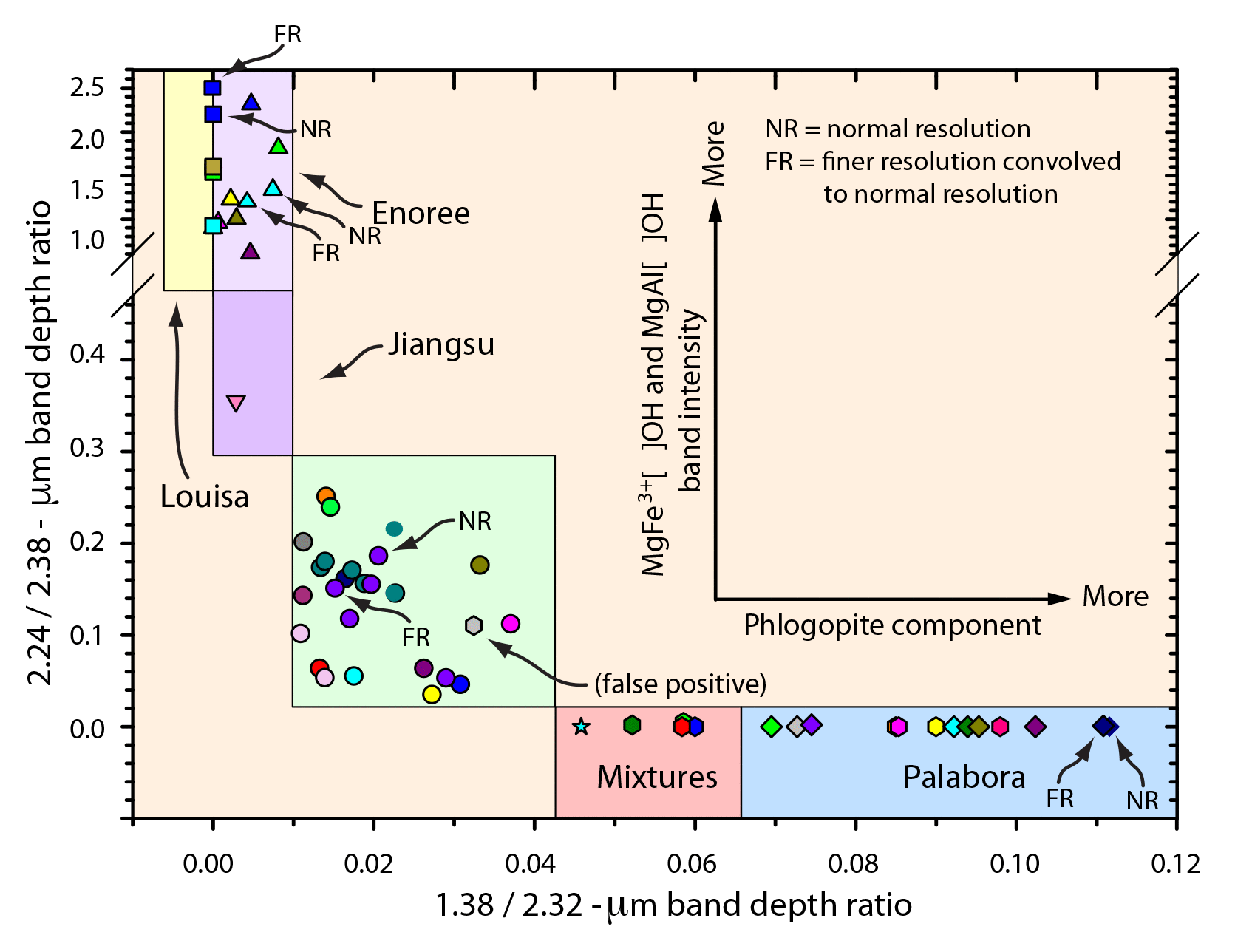test (i.e., 2.24-µm absorption position vs 2.24/2.38-µm band depth) was incorporated into the