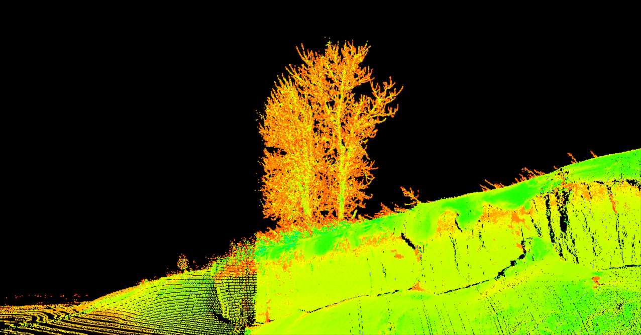 Original ground-based Light Detection and Ranging (LiDAR) image of high cut-bank site on Lower Brule Reservation, March 2011.