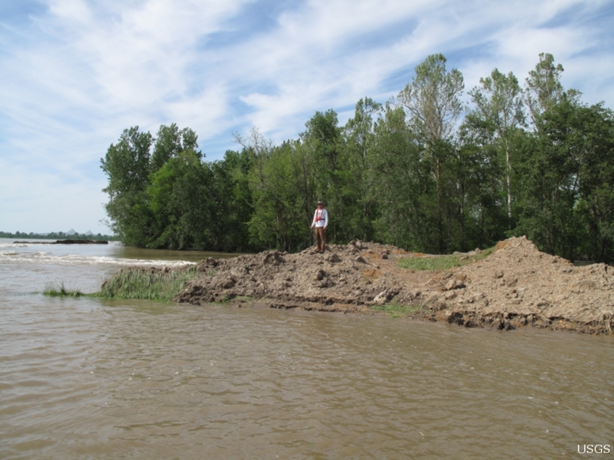 Inflow breach at Birds Point-New Madrid floodway. USGS scientists are measuring the amount of water spilling into the New Madrid floodway as a result of the recent intentional breaching of the Birds Point Levee in Missouri in support of the Corps of Engineers operation. When flooding happens, USGS field crews are among the first to respond. During and after storms and floods, USGS field crews measure the streamflow and height of rivers and ensure the accuracy and reliable operation of streamgages. Field crews continue to work as waters recede, gathering high water marks for post flood analysis. All this data and information is crucial for such activities as the issuance of flood warnings and characterization of flood hazards to mitigate future damages.