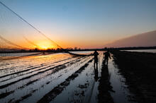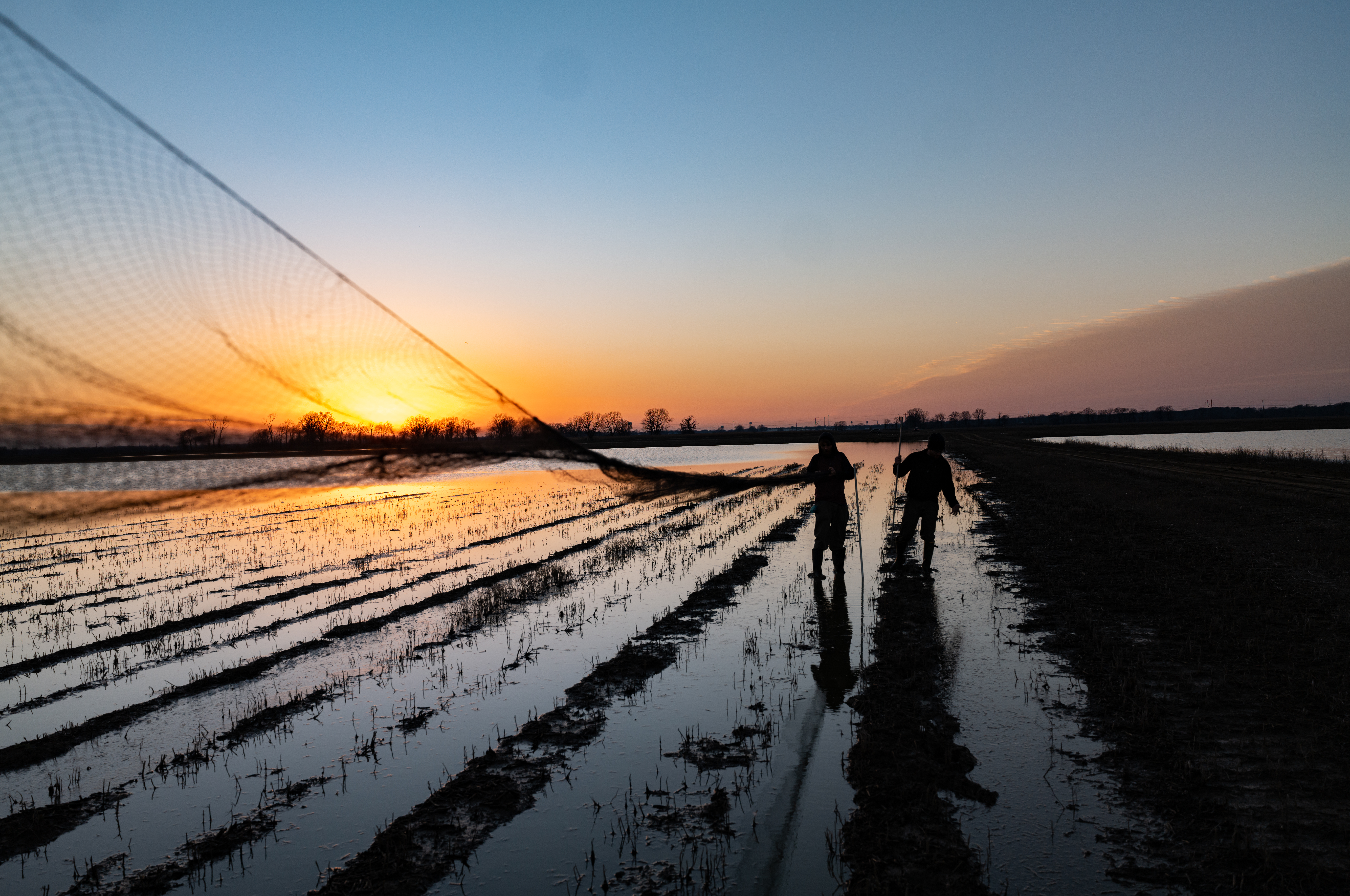 mist net over a flooded agricultural field