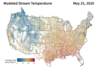 Snapshot of modeled stream temperature data from across the lower 48 United States on May 25, 2020. Data from https://doi.org/10.1016/j.envsoft.2025.106655
