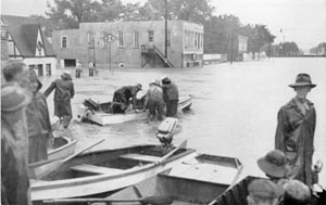 More rain as evacuation by boat gets underway. Johnny's Tavern 1951