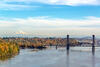 Burlington Northern Railroad Bridge and Mt. Hood seen from Portland, Oregon.