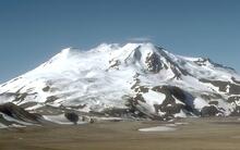 Mount Mageik volcano viewed from the Valley of Ten Thousand Smokes, Katmai National Park and Preserve, Alaska. Mageik's broad summit consists of at least four separate structures.