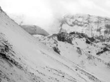 Mount St. Helens' dome from the Sugar Bowl remote camera. Image has been converted to black/white for clarity. Compare with image of December 28, 2004.