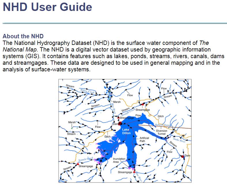 This is a screen capture from the NHD User Guide Homepage for illustration purposes. https://nhd.usgs.gov/userguide.html