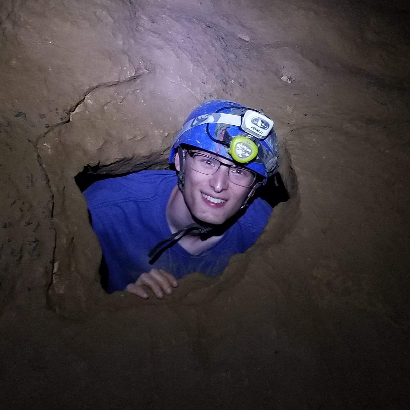 Nicholas (Nick) Powell smiles for the camera during a caving expedition.