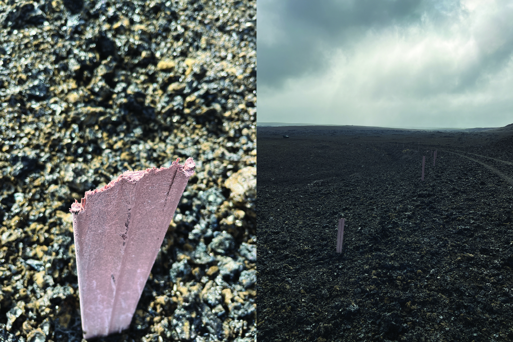 November 17, 2025 — Road marker damaged during episode 36 of Kīlauea's ongoing summit eruption
