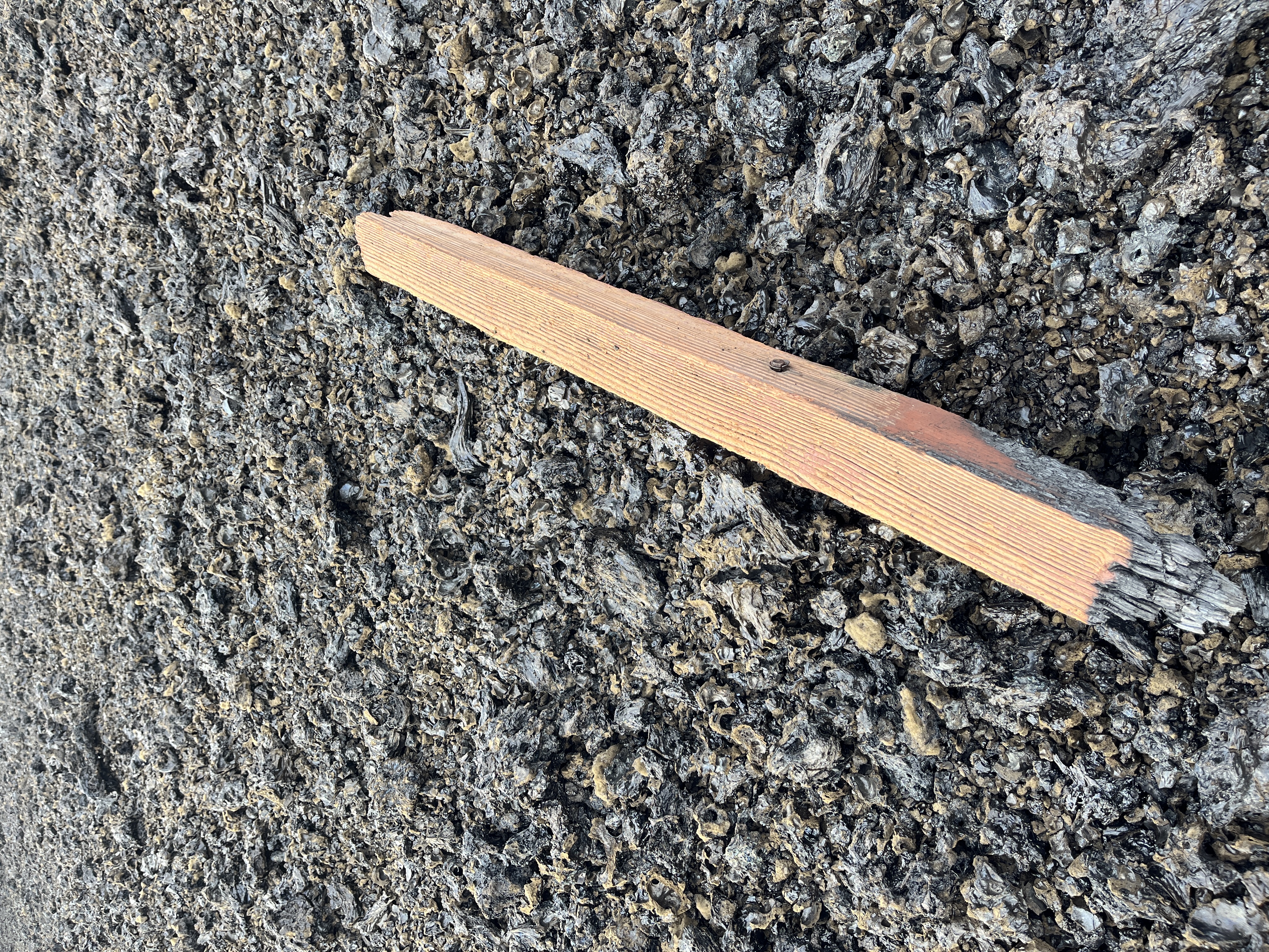 November 17, 2025 — Wooden post damaged by episode 36 of ongoing Kīlauea eruption