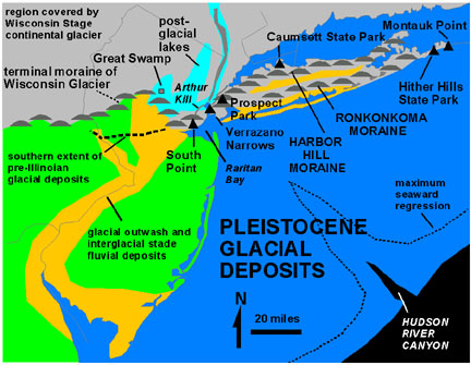 Pleistocene glacial deposits and features in the New York City region.