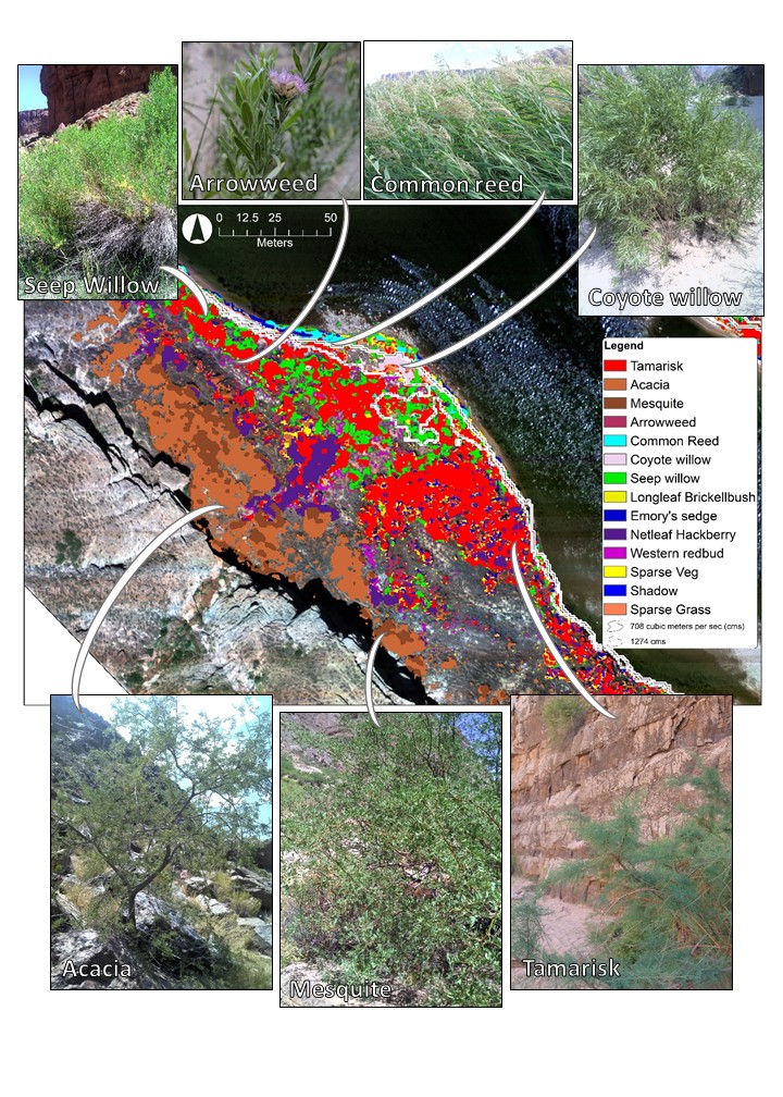 Overflight imagery remote sensing analysis of riparian vegetation along the Colorado River. This information was presented by USGS' research geologist Joel Sankey to the Glen Canyon Dam Adaptive Management Program.