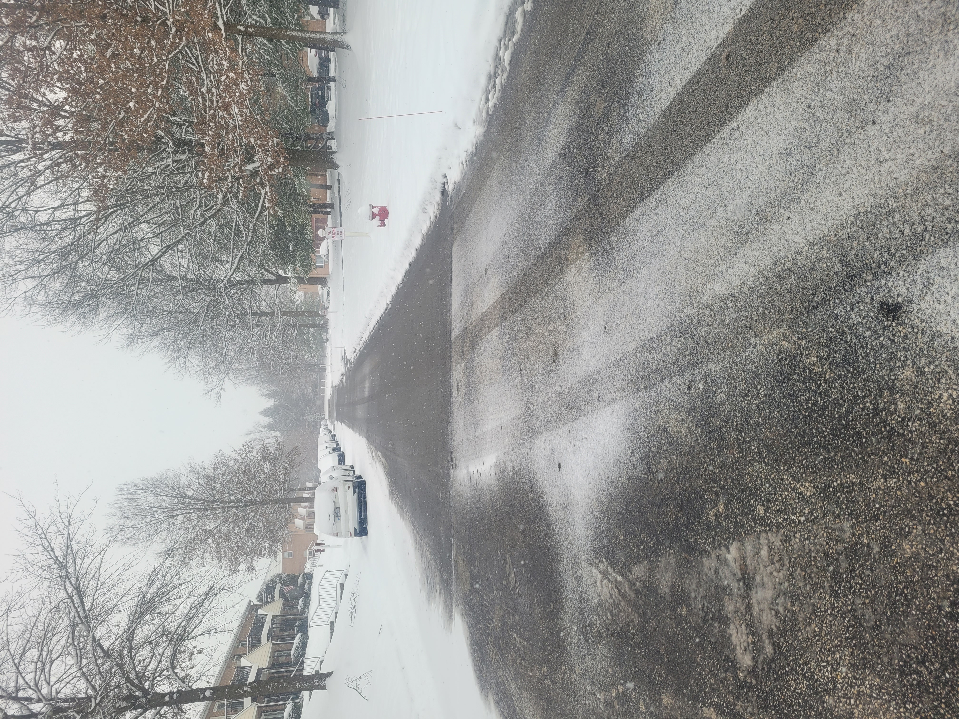 Winter day in a southeastern Pennsylvania neighborhood with a heavilty salted road.