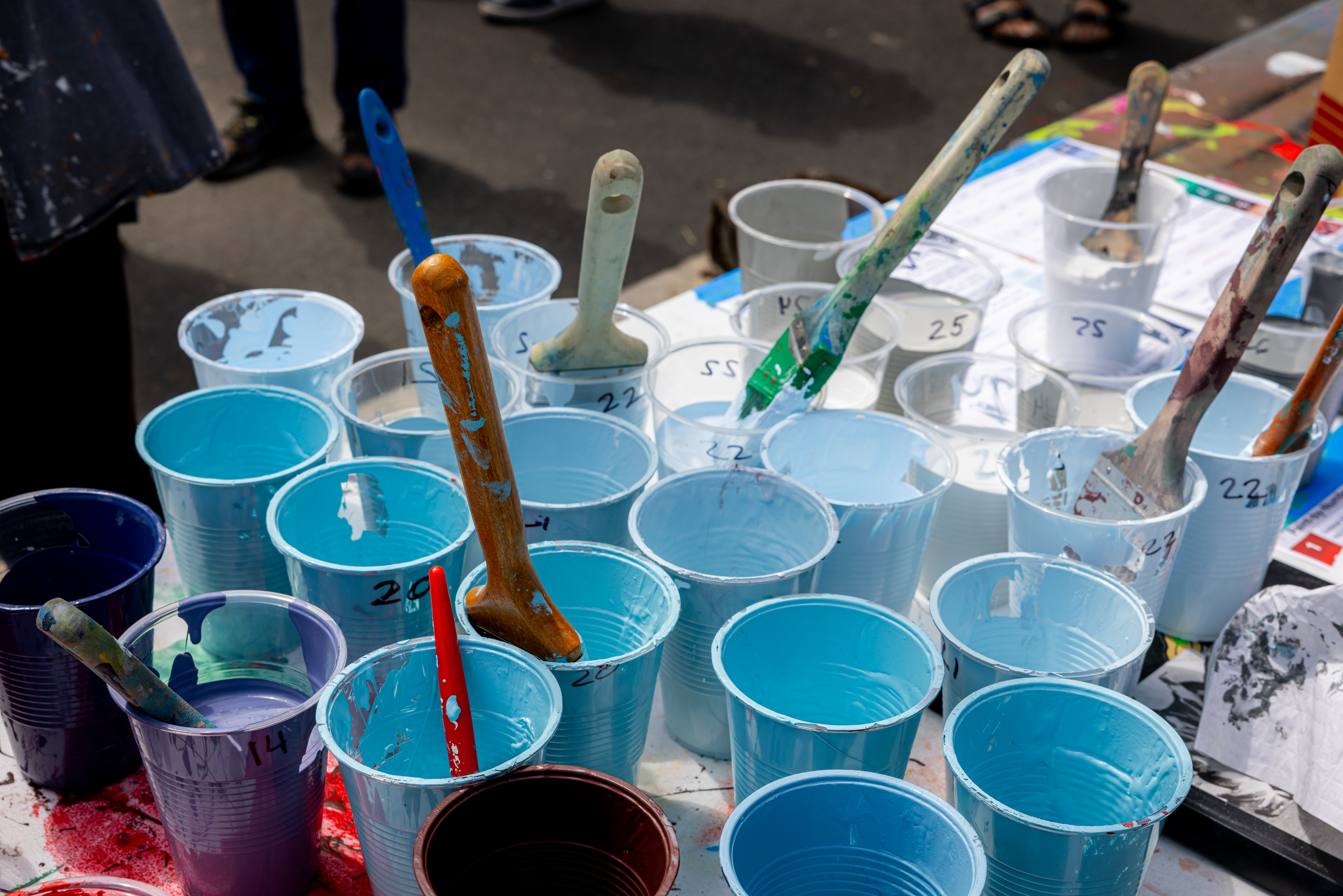 WFRC staff and volunteers selected a cup of paint and only painted areas on the building containing the number on their cup.