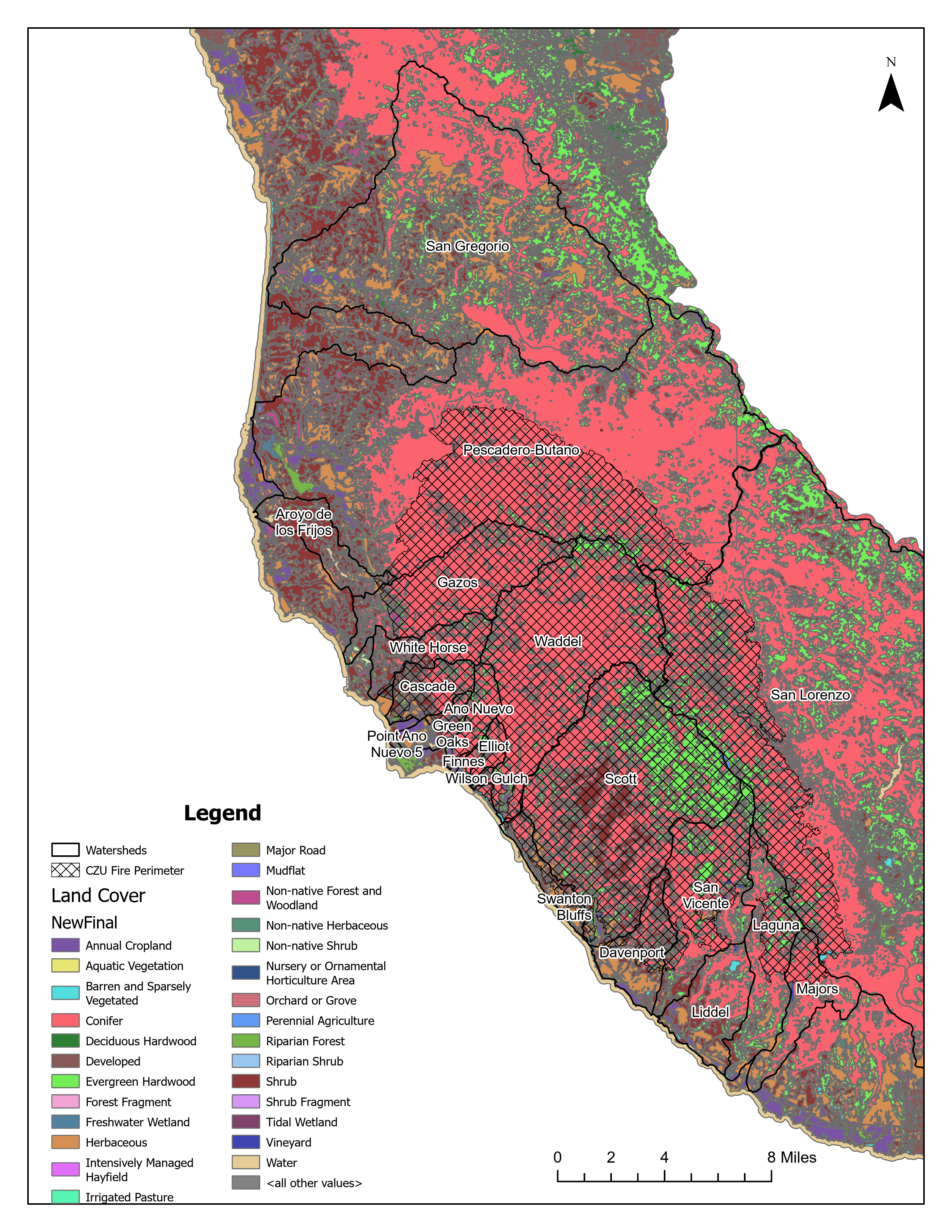 PCMSC GeoChem Lab - CZU Map vegetation and fire perimeter