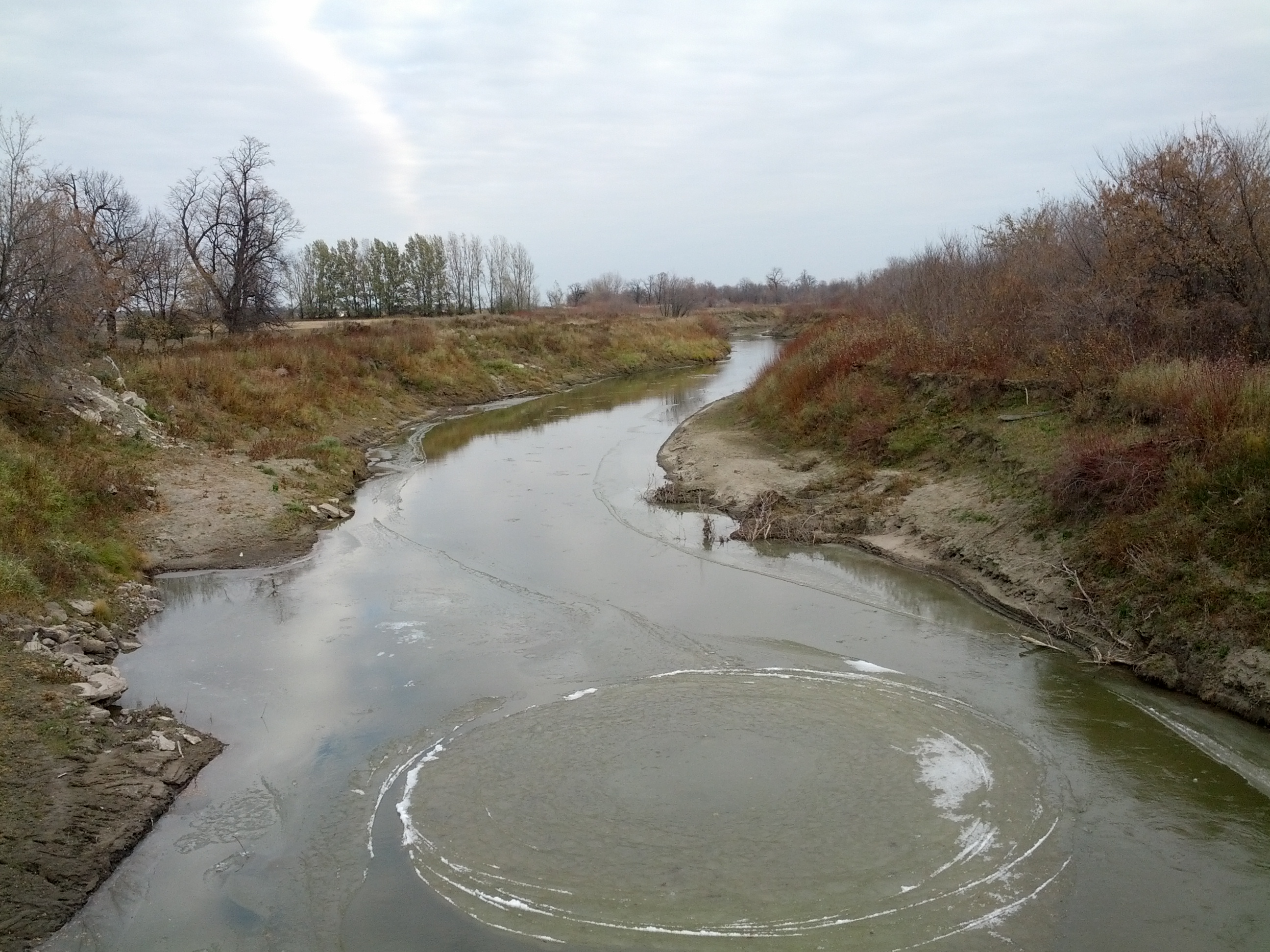 October 30, 2014 - Looking downstream on the Pembina River at Neche, North Dakota. Flow is estimated at 131 cubic feet per second.