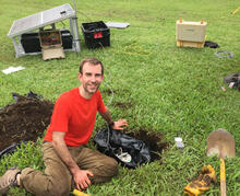 Geophysicist Brian Shiro, manager of the USGS Hawaiian Volcano Observatory's seismic network, was part of HVO's team that installed several new stations on Kīlauea Volcano's lower East Rift Zone to monitor earthquakes during the 2018 eruption. The station they installed here, ERZ1, was eventually overrun by lava, but it provided important data while it lasted. USGS photo.