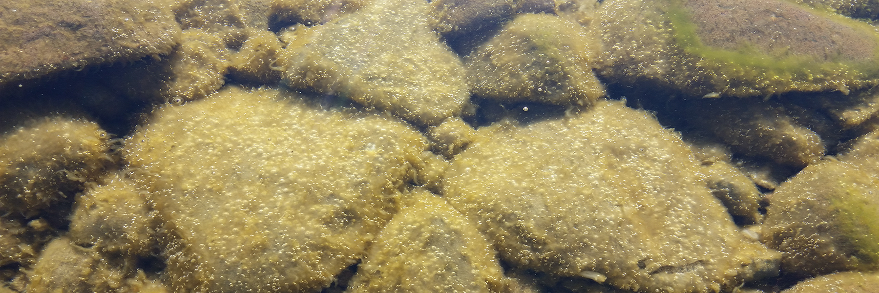 Periphyton growing on rocks along the shore of Lake Tahoe.