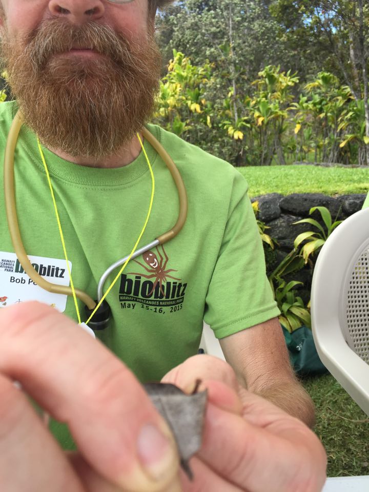 PIERC cooperator Bob Peck displays a carnivorous caterpillar at HVNP Bioblitz