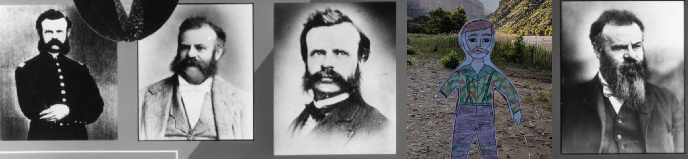Portraits of JW Powell taken in the 1870-80s, and Paper Powell, 2019