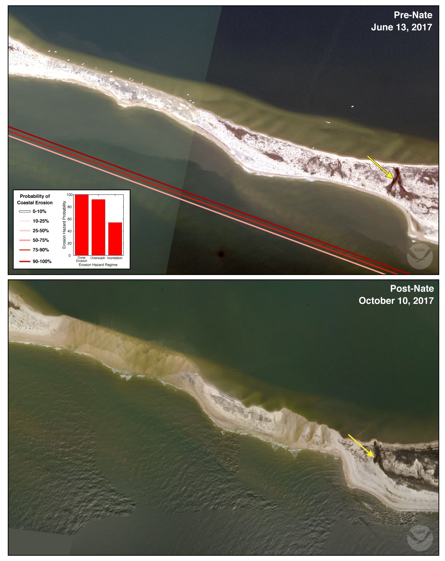 Pre-and Post Storm Photo for Hurricane Nate - Dauphin Island
