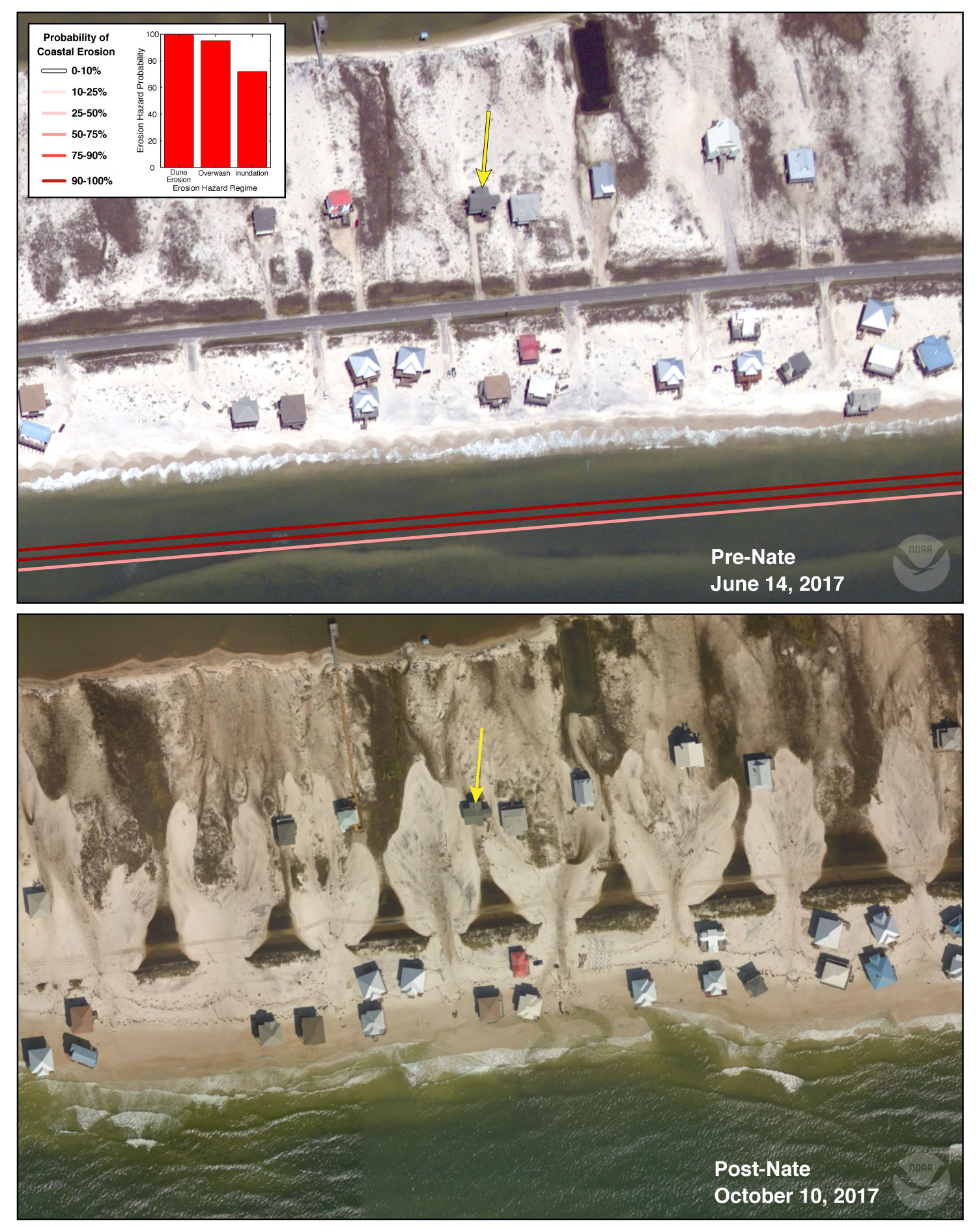 Pre-and Post Storm Photo for Hurricane Nate - Dauphin Island