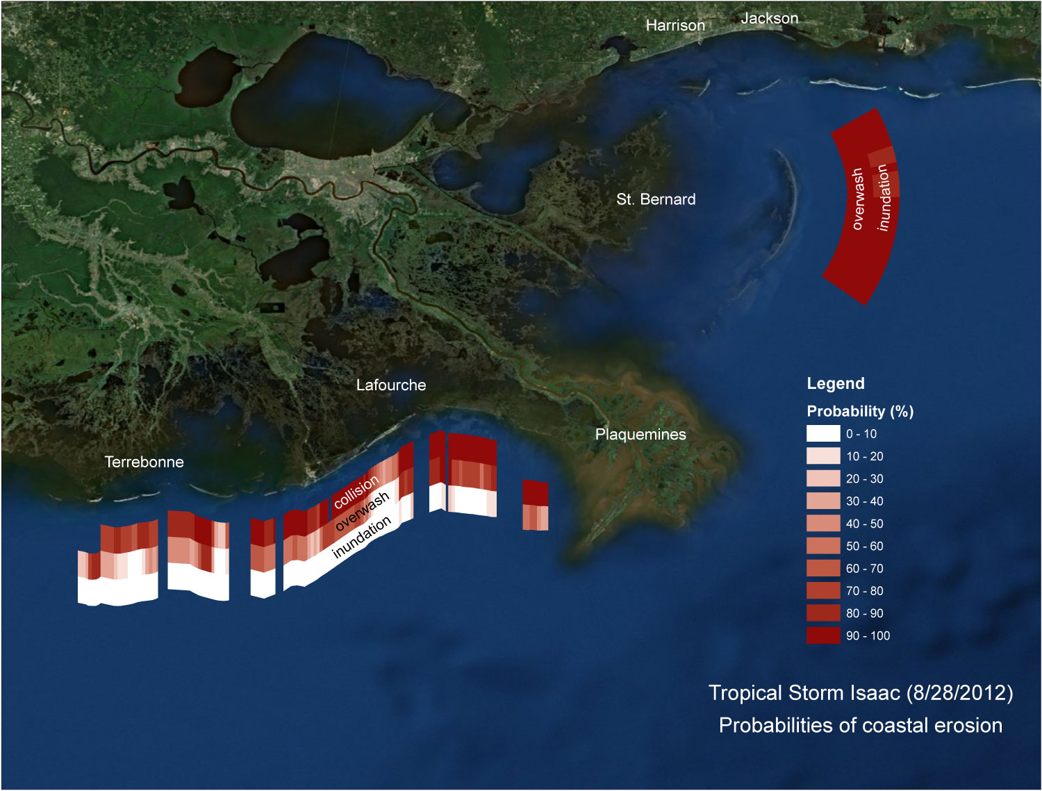 Probabilities of coastal erosion - Hurricane Isaac, LA