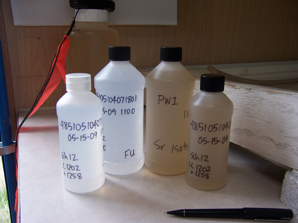 Production well samples; liquid in bottles