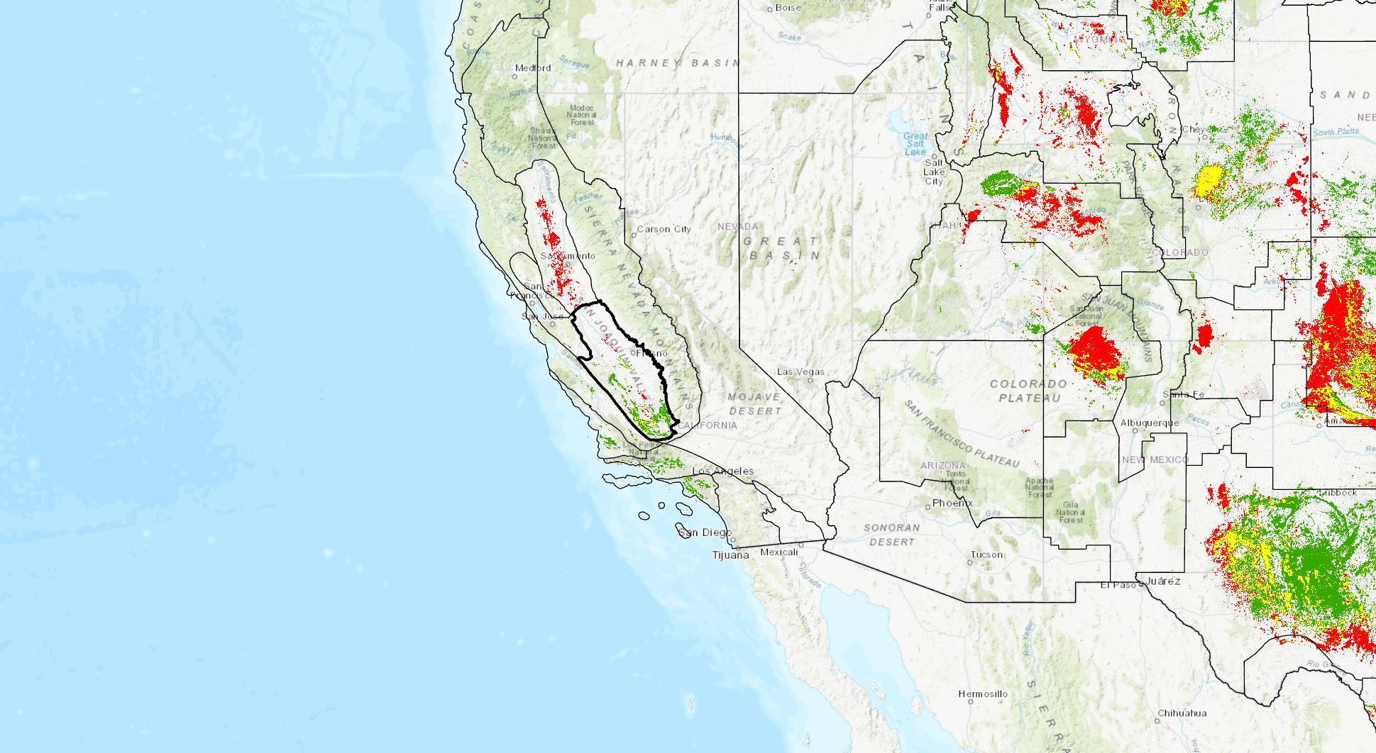 Outline map of Province 5010 San Joaquin Basin located in California, National Oil and Gas Assessments.