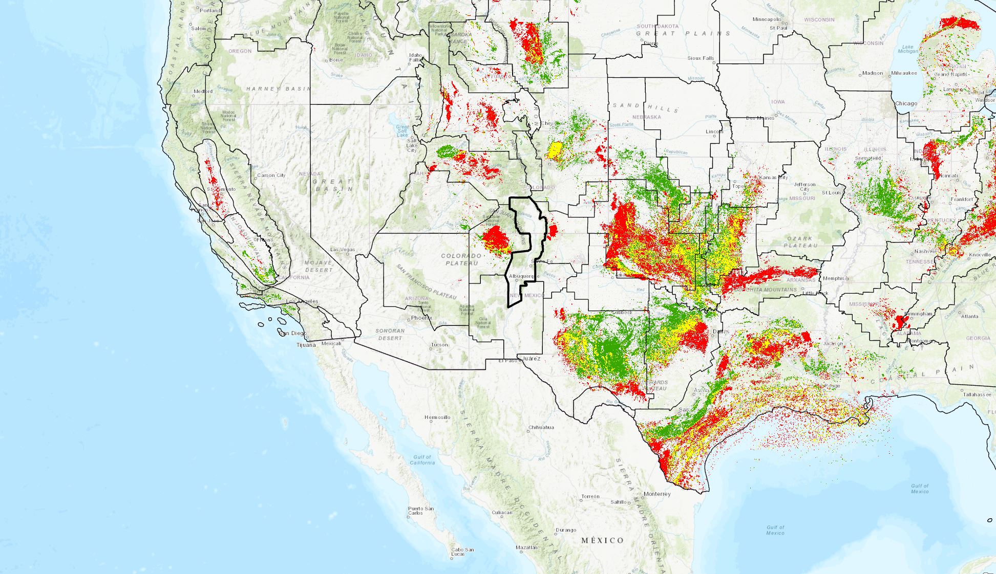 Map outline of Province 5023 Albuquerque-Santa Fe Rift, located in New Mexico and Colorado. National Oil and Gas Assessments.