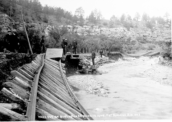 Another photograph of the railroad washout on June 17, 1905. Photograph courtesty of Fall River County Historical Society (used with permission).