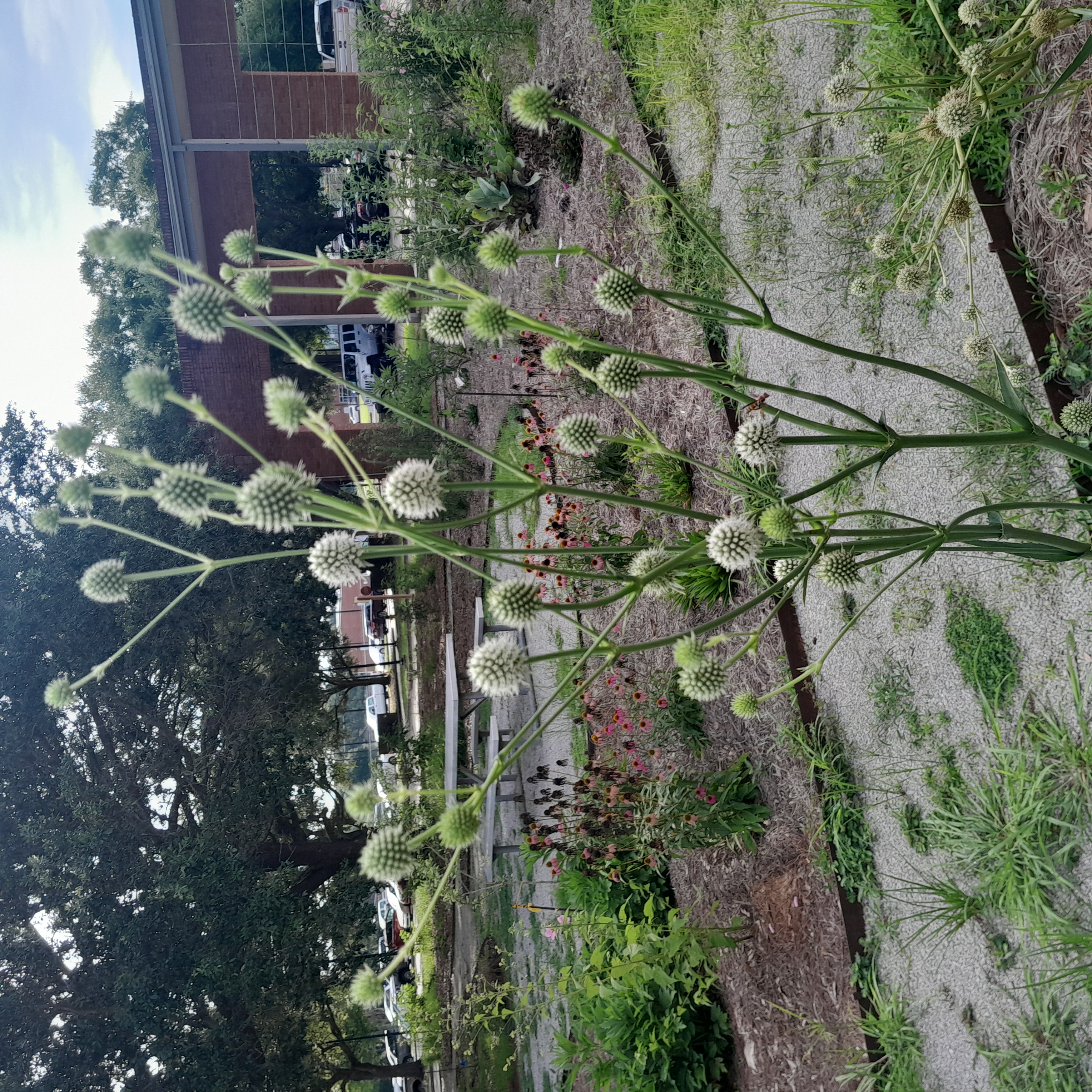 Rattlesnake master (Eryngium yuccifolium) in the pollinator garden at WARC in Lafayette, LA