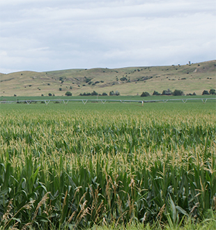 Right side of image: Center-pivot irrigated cornfield near Ord, Nebraska