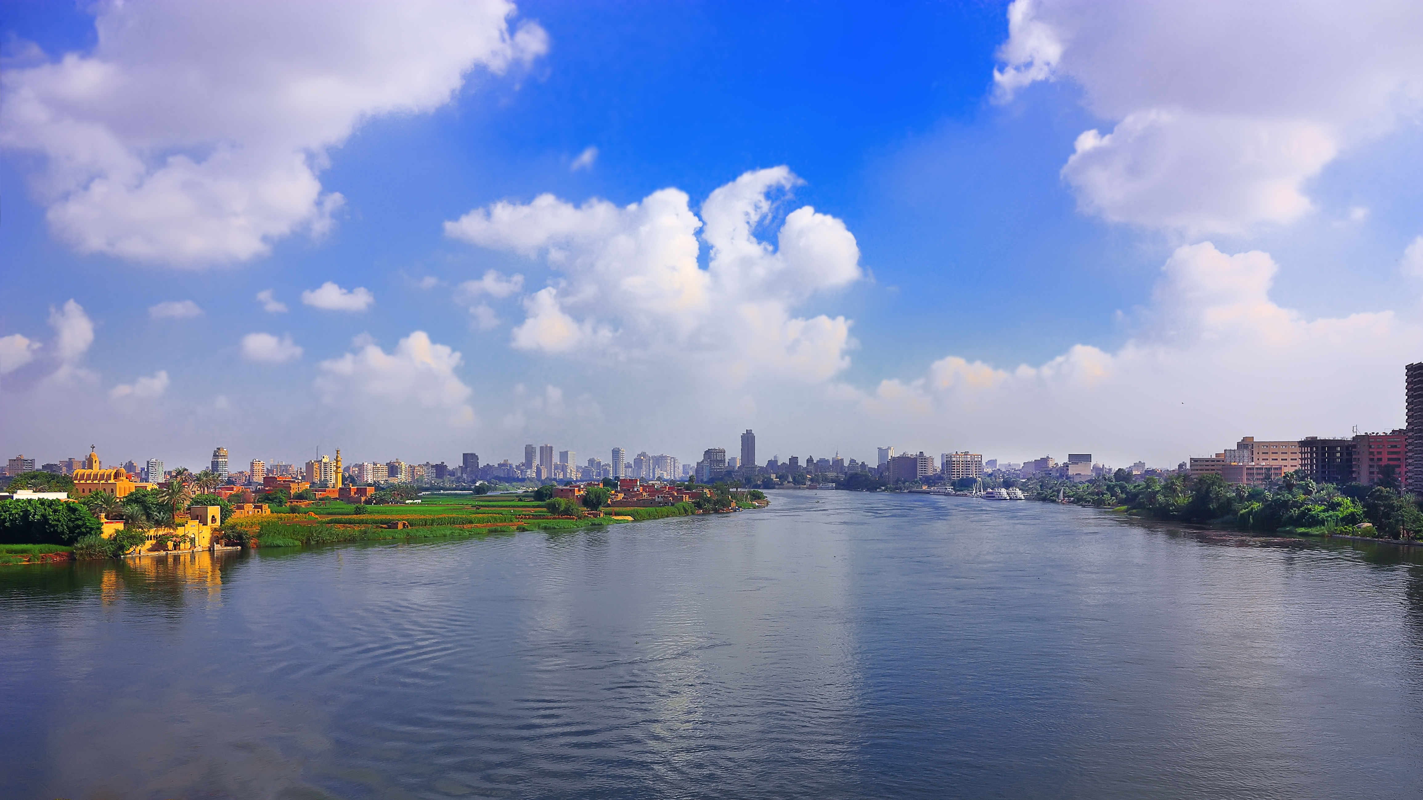 Nile river and the downtown of Cairo on the horizon