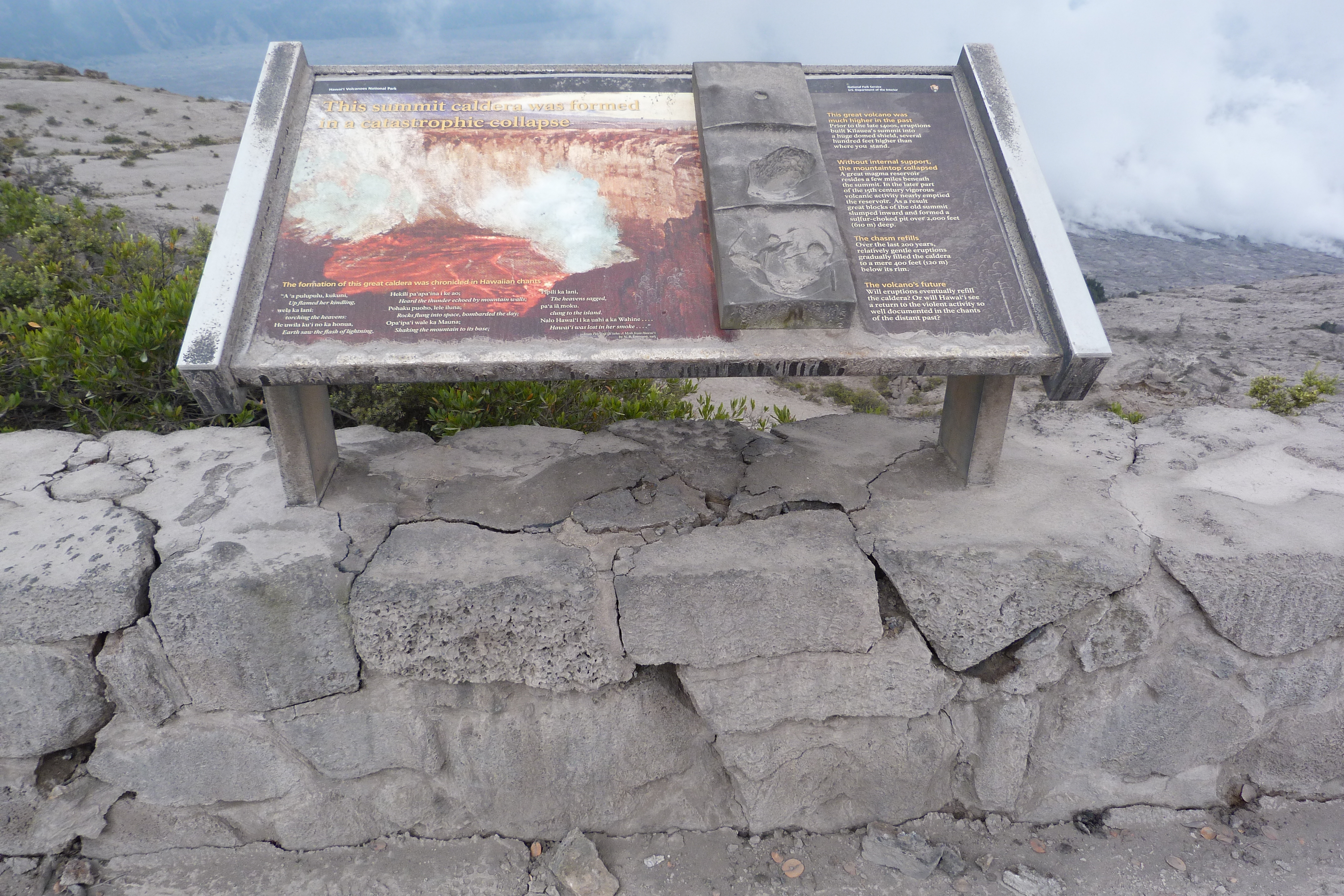 The rock wall cracks and crumbles at the Jaggar Museum Overlook, in Hawai‘i Volcanoes National Park.
