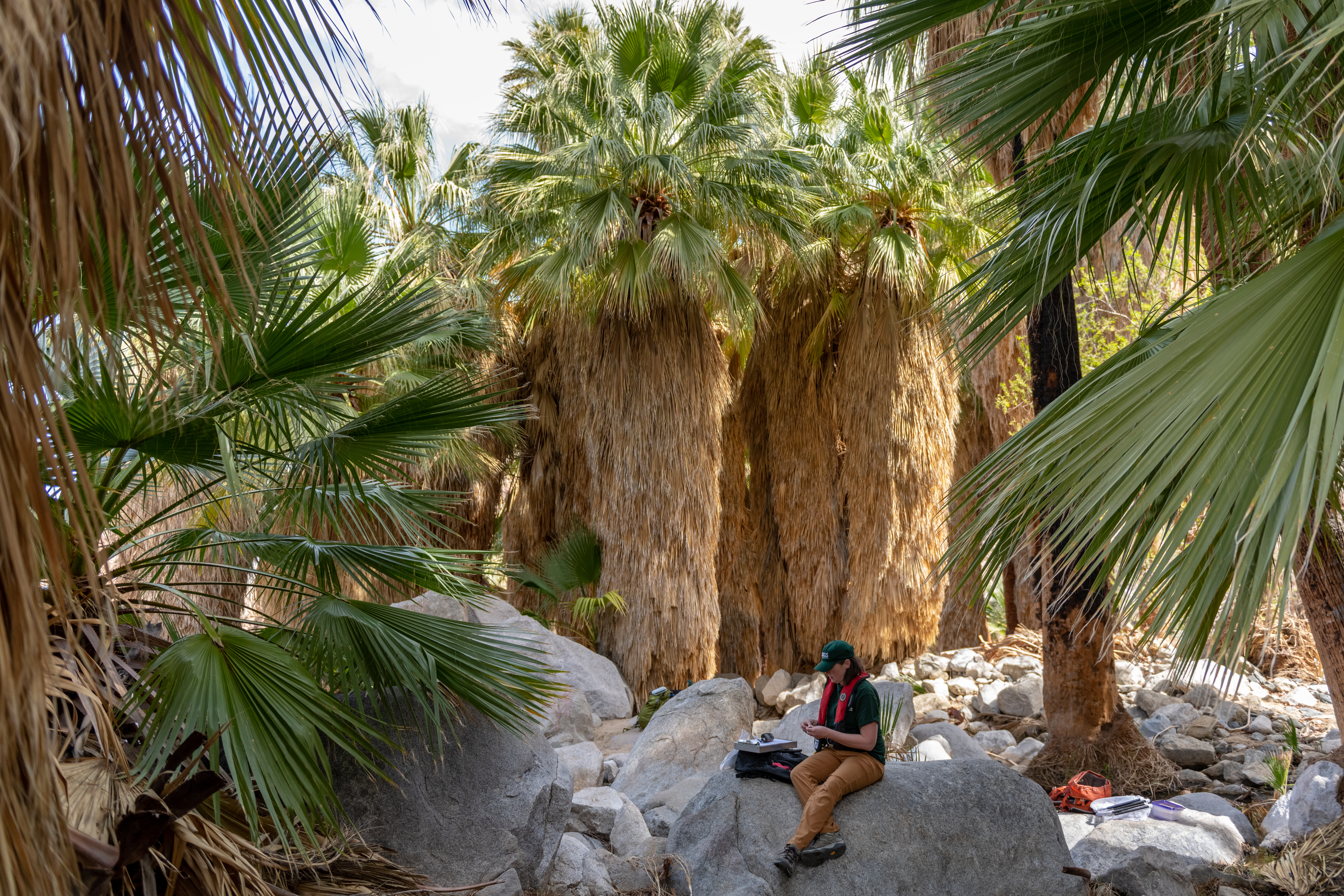 Scientist collects dragonfly larvae in an arid environment for the Dragonfly Mercury Project. Photo credit: NPS