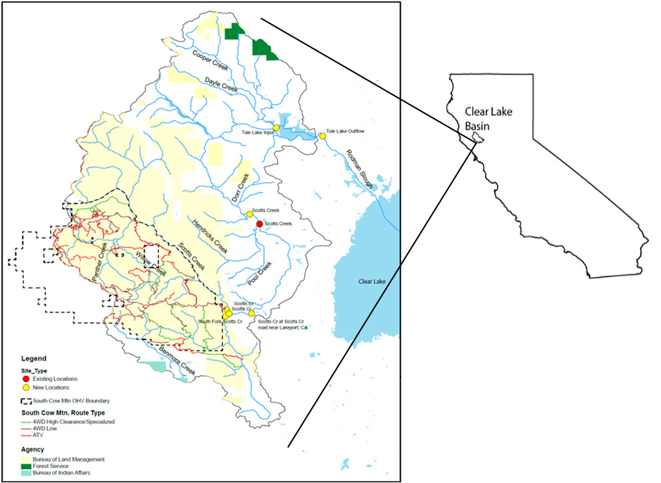 This is a map of the study area for a USGS Scotts Creek nutrient Erosion study in Lake County, California.