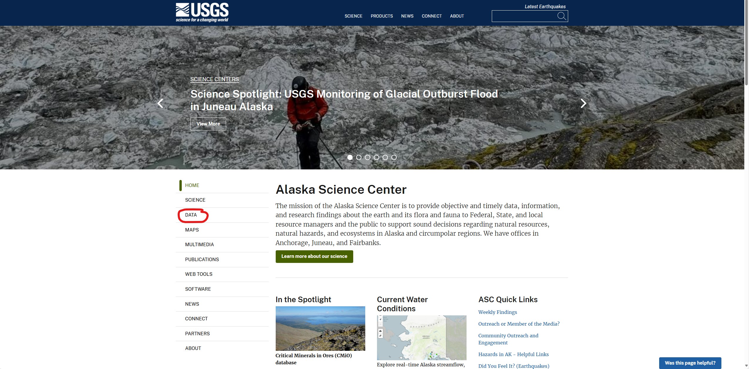 Screenshot of the ASC webpage with the "data" tag circled in red.
