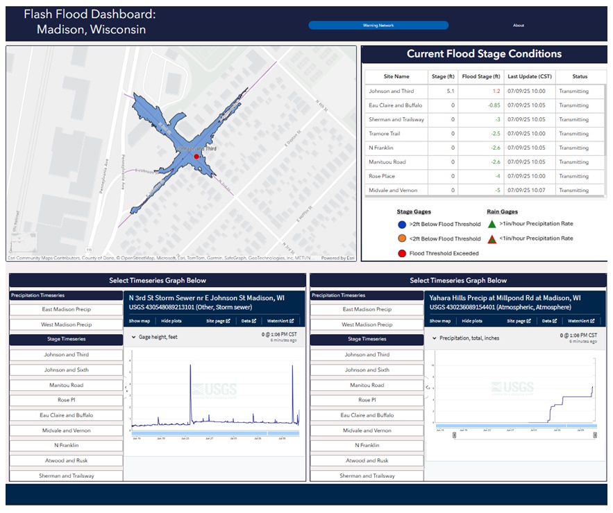 Screenshot of the Madison, Wisconsin Flash Flood Dashboard