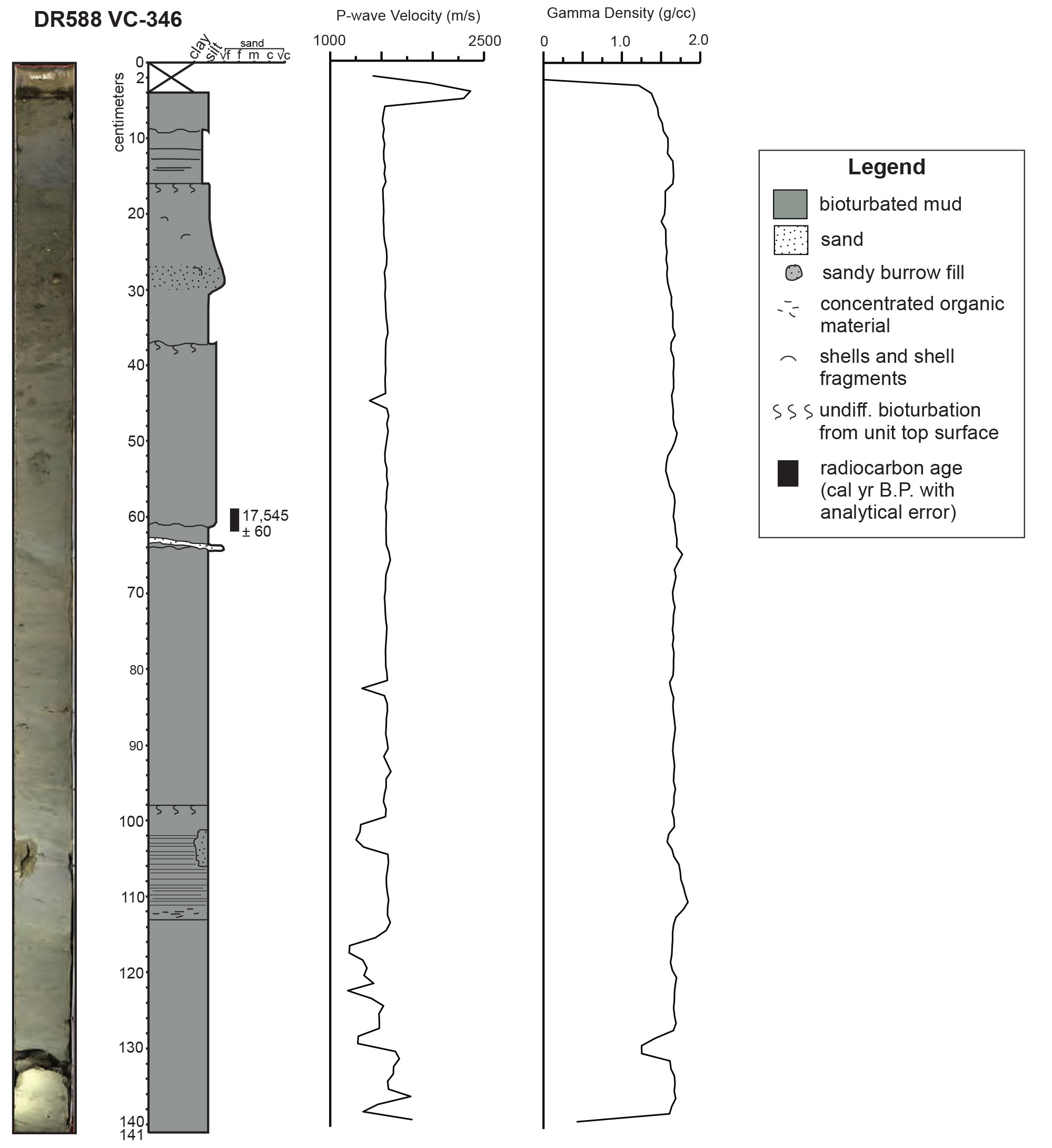 Photograph and sketches of a sediment core collected from offshore Monterey, California in the Monterey Canyon.