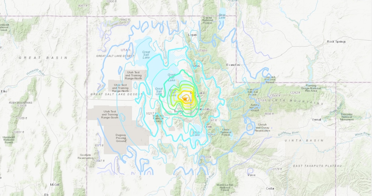 Shaking intensity for M5.7 Magna, UT earthquake.