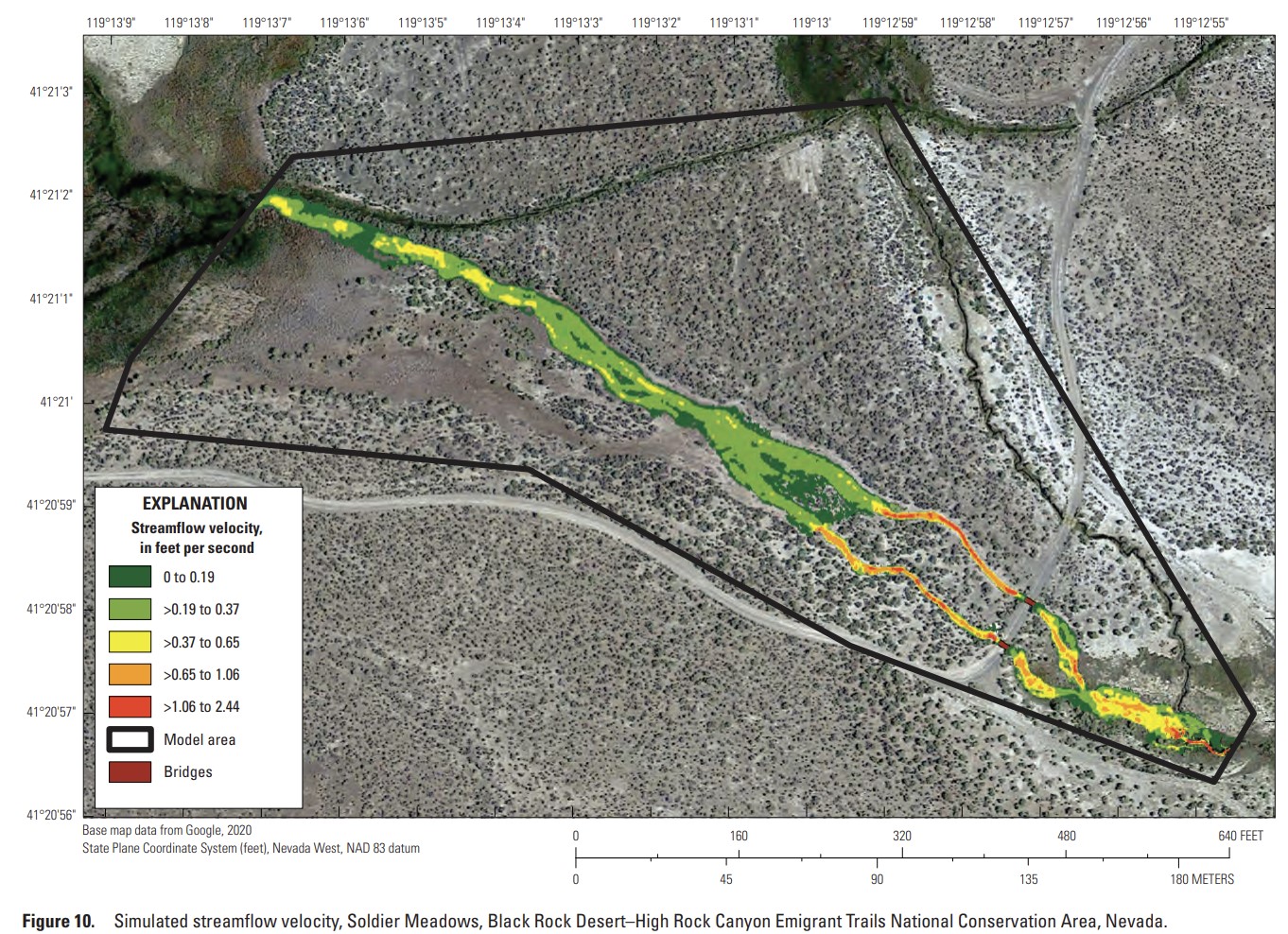 Simulated Streamflow Velocity at Soldier Meadows, Nevada