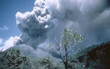 Small ash cloud Soufriere Hills on Caribbean island of Montserrat