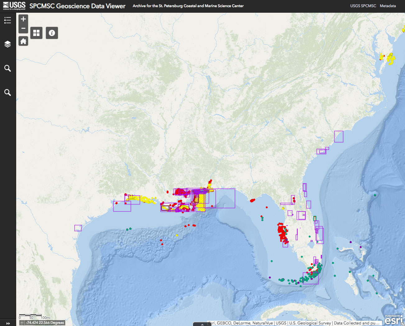 Screenshot of the St. Petersburg Coastal and Marine Science Center Geoscience Data Viewer.