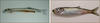 On the left: Herring larvae 53 d post-hatch. Black pigmentation is evident. On the right: Herring juvenile 103 days post-hatch. Larval metamorphosis to juveniles is complete.