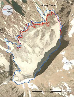 This is a map of the margin of Sperry Glacier in 1998 and 2005.