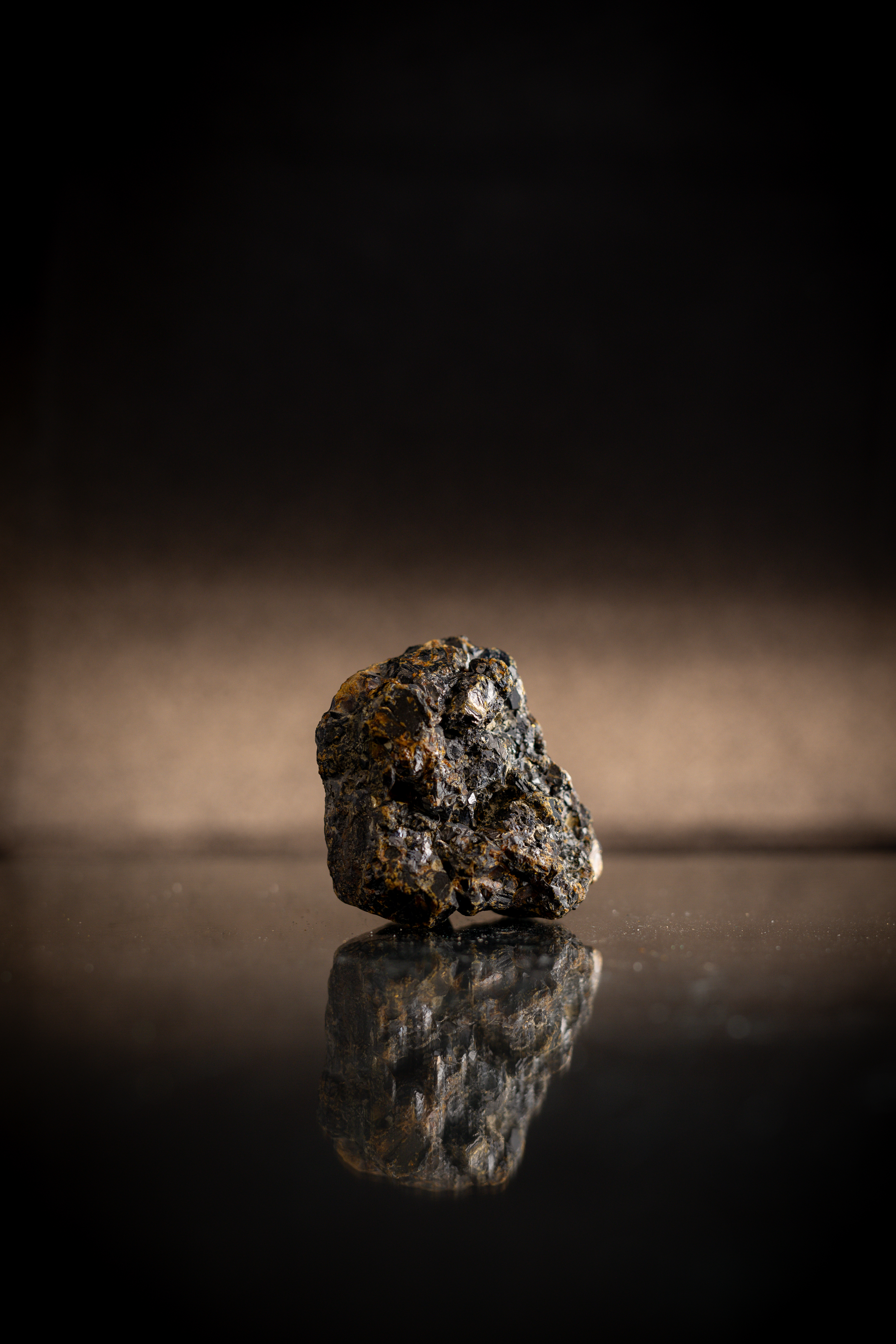 High-definition image of sphalerite specimen with dark coloration and crystal structure.
