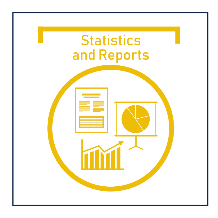 Icon image representing that user will be taken to a page where they can find "Statistics and Reports" of a topic.