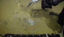 Steam-driven vents on the floor of Yellowstone Lake in the Deep Hole, east of Stevenson Island. Image acquired by the Global Foundation for Ocean Exploration ROV Yogi in August 2017.