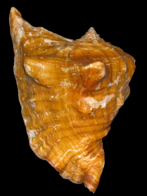 The coiled seashell of Strombus peruvianus with the aperture (shell opening) facing down (away from the camera). Photograph taken 2002 or earlier.